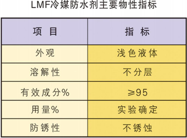 LMF冷媒防水劑主要針對(duì)工業(yè)二氯甲烷等與水不互溶的傳熱介質(zhì)開(kāi)發(fā)的新型產(chǎn)品,該產(chǎn)品有利于使用二氯甲烷等易揮發(fā)類(lèi)化學(xué)液體作為載冷劑的制冷系統(tǒng)正常運(yùn)行,具有提高載冷能力,防冰堵冰爆,防銹蝕等優(yōu)異性能。