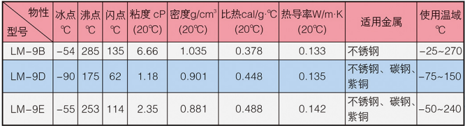 LM-9系列冰河冷媒由多官能團(tuán)有機(jī)物改性而成,外觀為淺色液體,不溶于水,可燃。具有粘度低、揮發(fā)性小、防銹性好、化學(xué)性質(zhì)穩(wěn)定等特點(diǎn)。