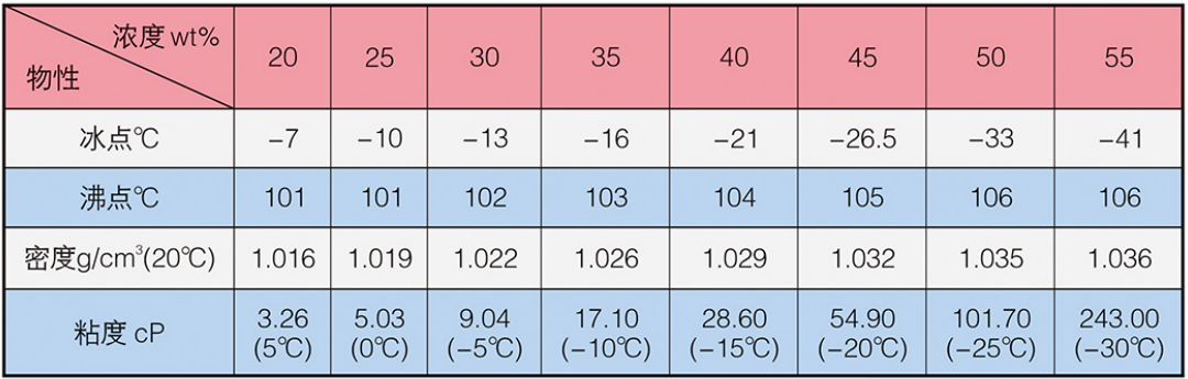 LM-4A型冰河冷媒由改性二元醇構(gòu)成,主要添加劑包括防腐蝕劑,防霉劑,增溶劑、水穩(wěn)劑等。外觀為淺色液體。安全無毒、無異味、不易揮發(fā)。20°C時密度為1.04g/cm³,比熱為0.56cal/g·°C,粘度為15.9mPa·s(cP),熱導(dǎo)率為0.21W/m·K。沸點高于130°C,冰點低于-50°C,閃點為100°C。