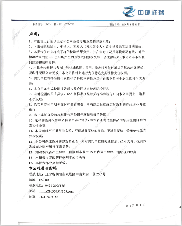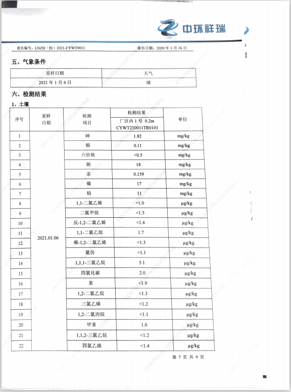 朝陽(yáng)光達(dá)化工有限公司西廠區(qū)土壤檢測(cè)報(bào)告公示