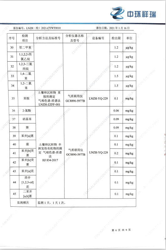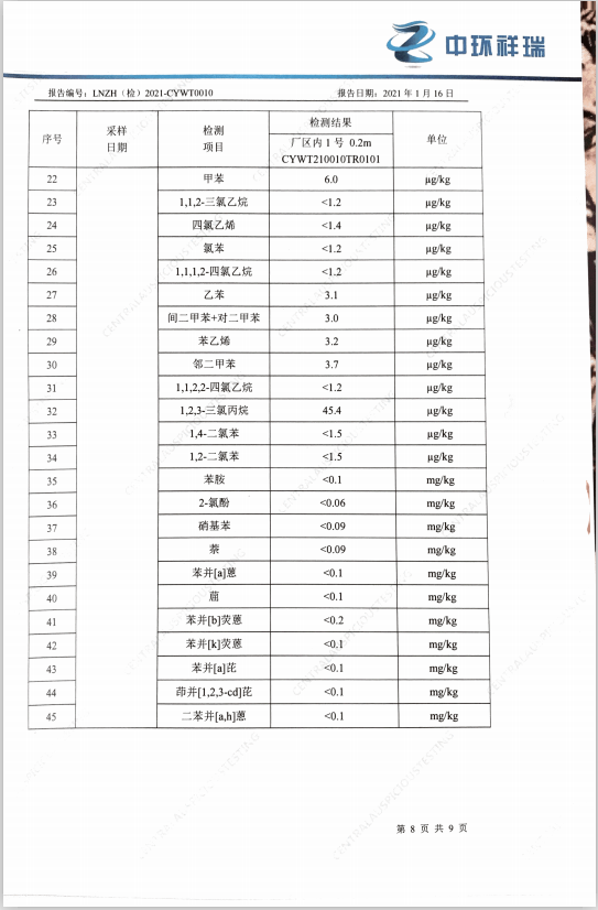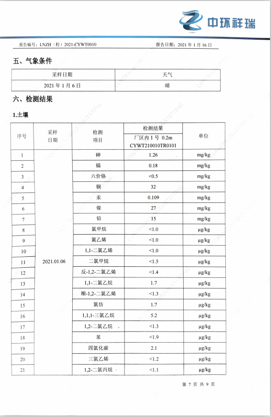 朝陽(yáng)光達(dá)化工有限公司老廠區(qū)土壤檢測(cè)報(bào)告公示