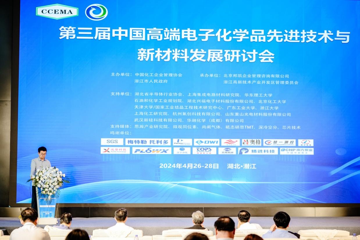 電子化學(xué)品是光電子信息產(chǎn)業(yè)的基礎(chǔ)底盤和關(guān)鍵命脈。談及為何主辦此次大會,并選址潛江,中國化工企業(yè)管理協(xié)會副主任裴小明透露,為了繼續(xù)推動我國電子化工材料行業(yè)的快速健康發(fā)展,促進產(chǎn)學(xué)研深度交流與合作,加速關(guān)鍵材料國產(chǎn)化,完善并加強國內(nèi)產(chǎn)業(yè)鏈供需關(guān)系。中國化工企業(yè)管理協(xié)會積極動員電子化工園區(qū),組織企業(yè)骨干與院校進行交流活動,共同解決行業(yè)“卡脖子”難題。